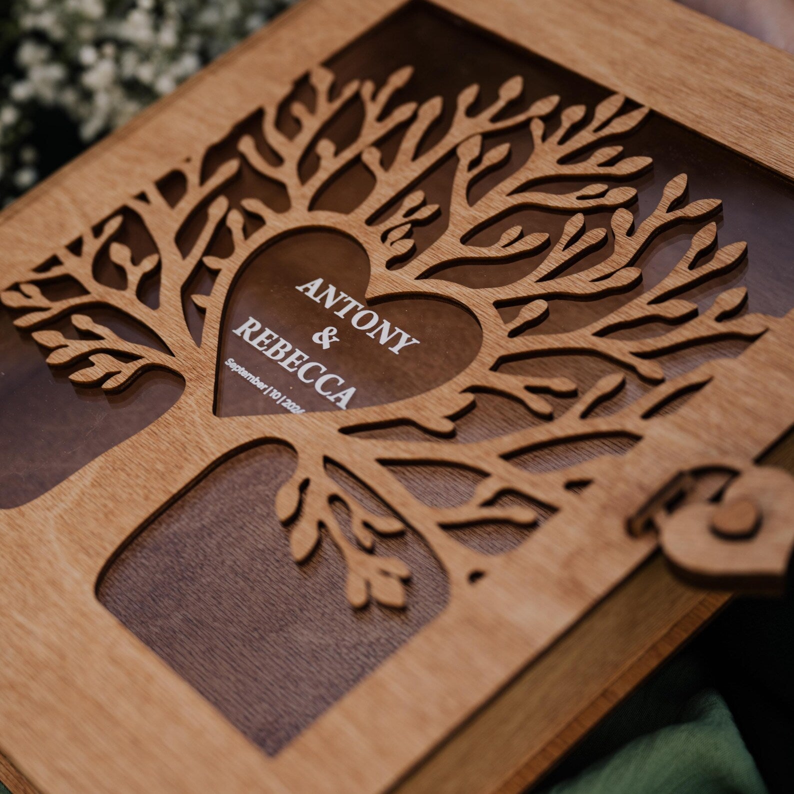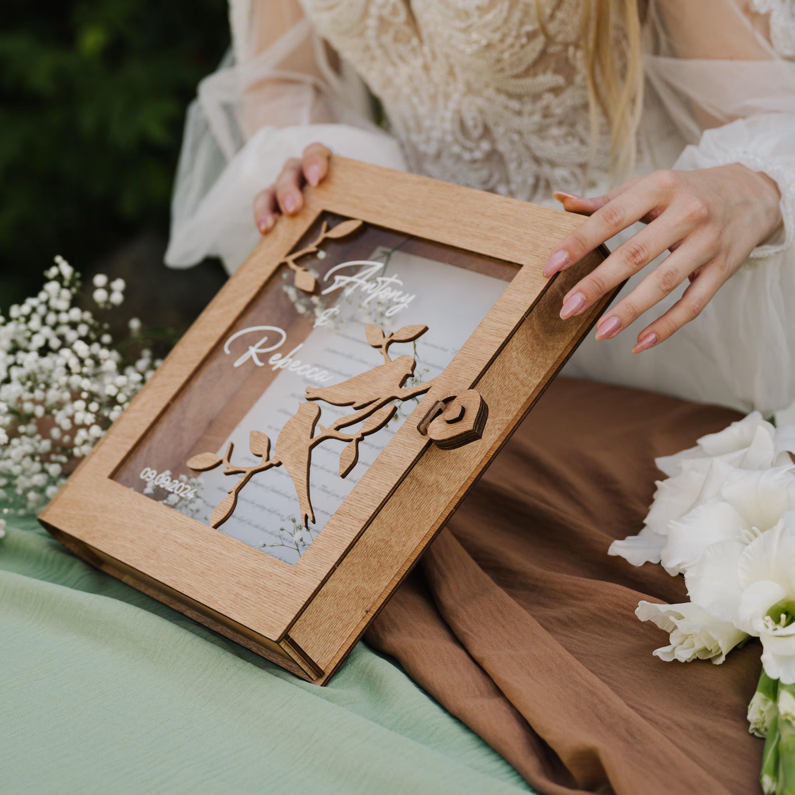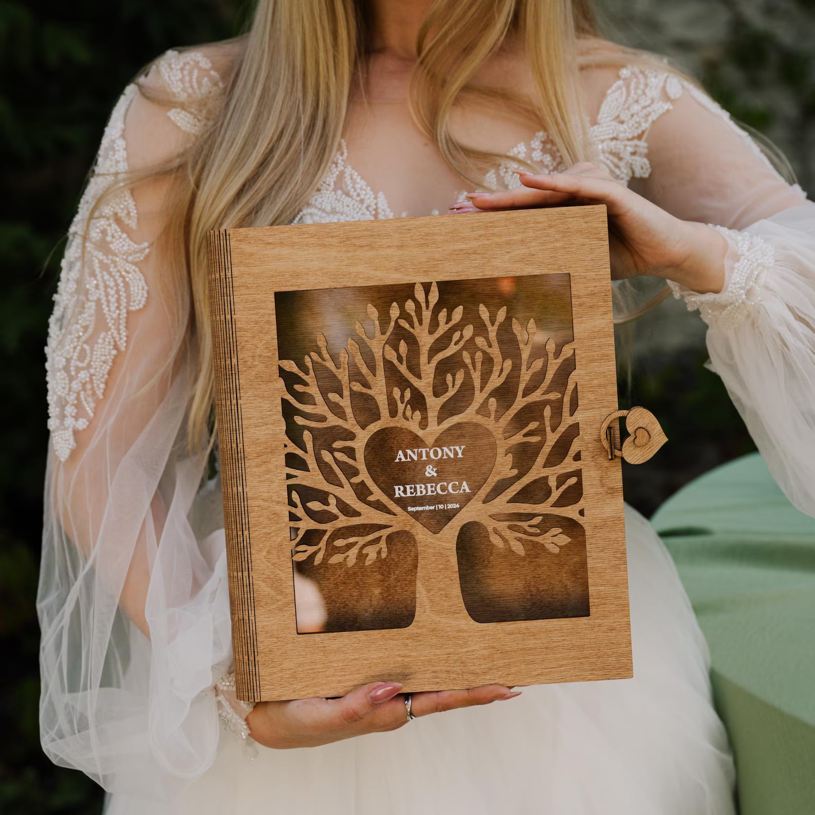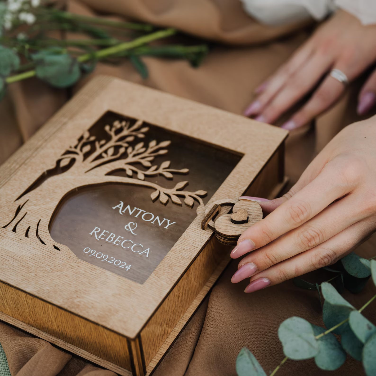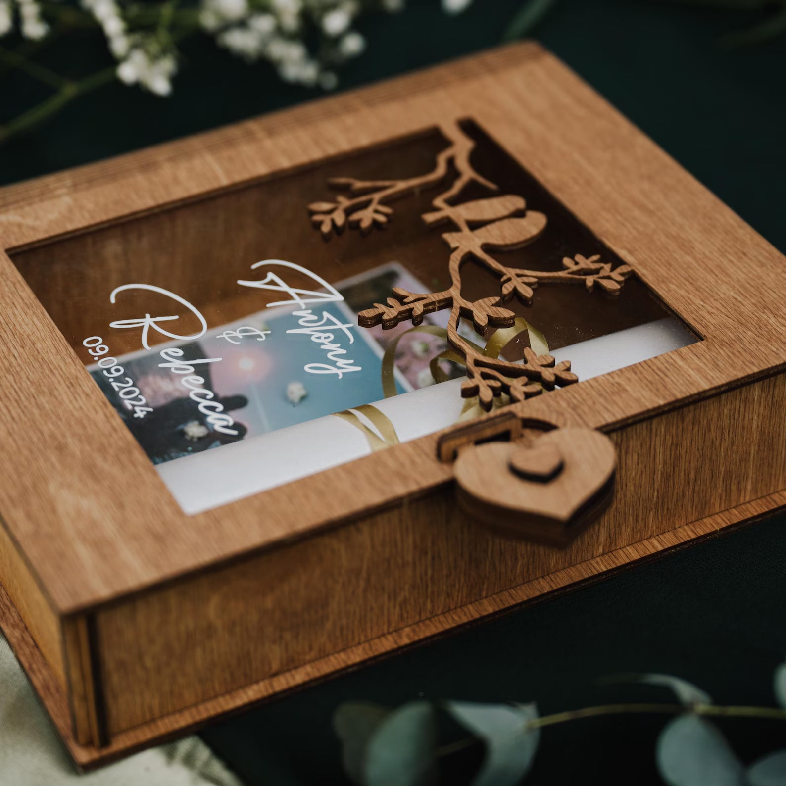 elegant wooden box becomes a timeless treasure chest of love and connection.