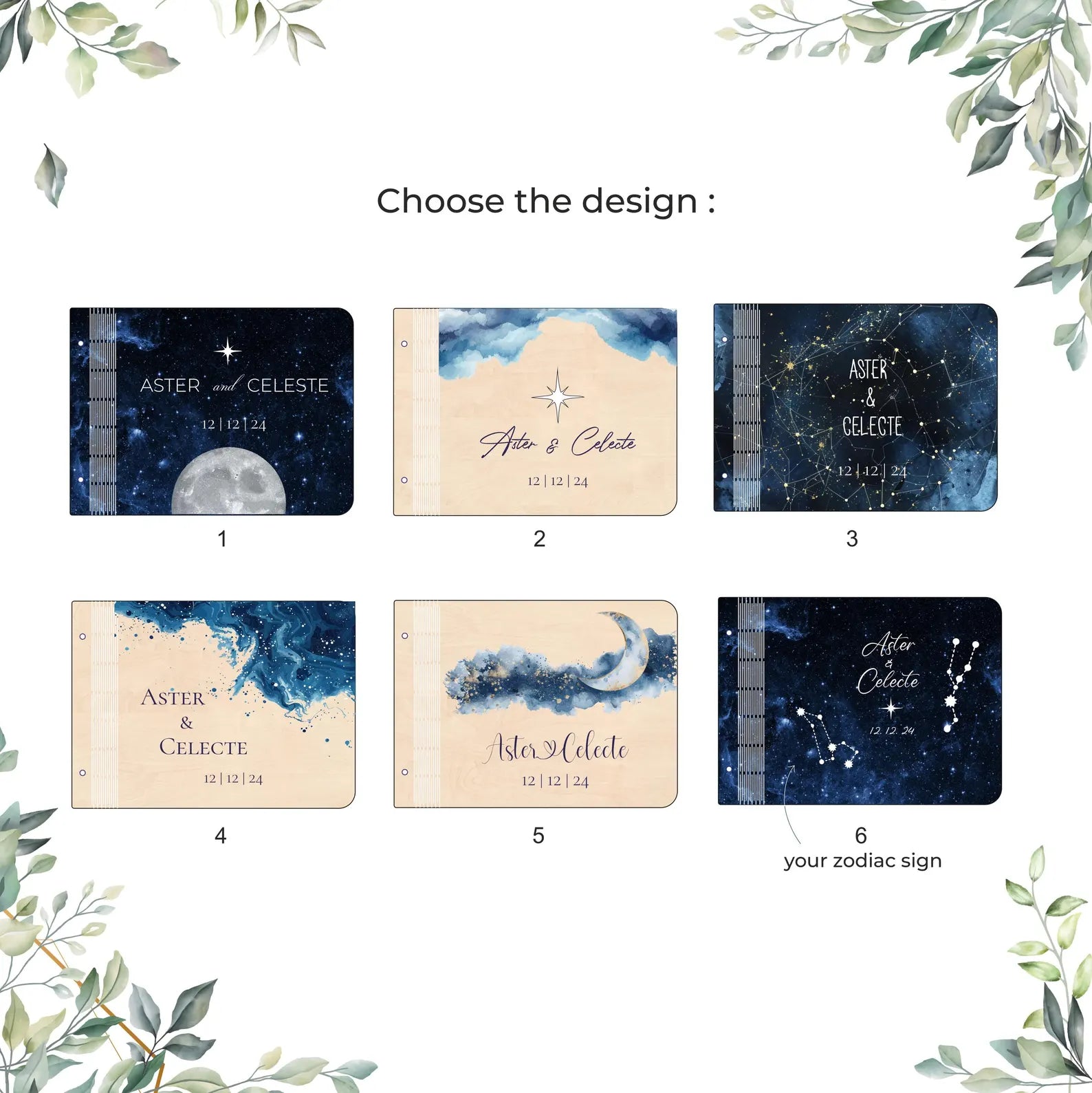 Livre d'or de mariage céleste personnalisé
