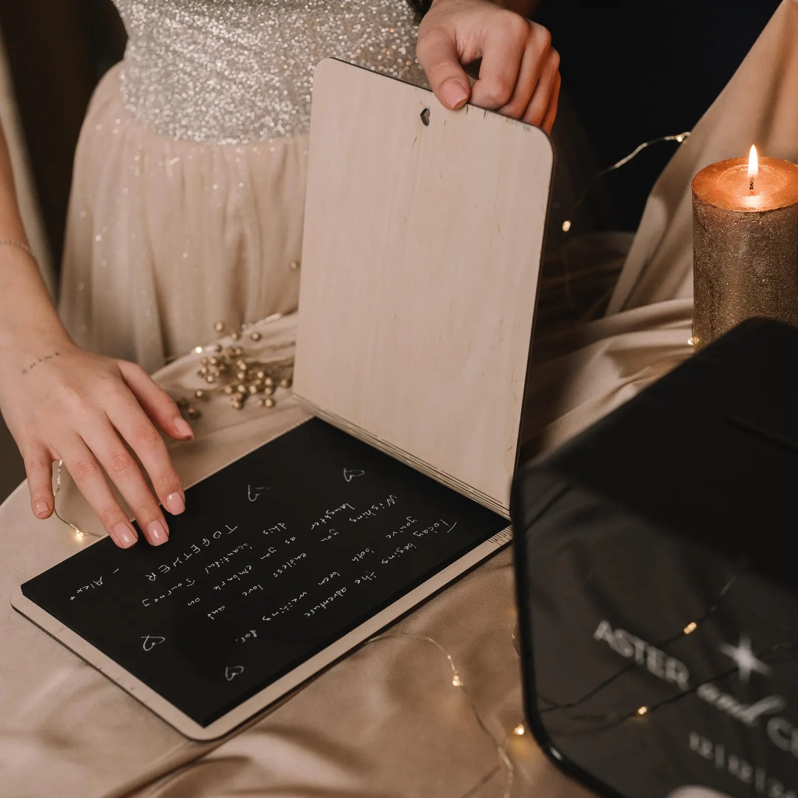 - Un livre d'or en bois avec un nombre de pages choisi ;