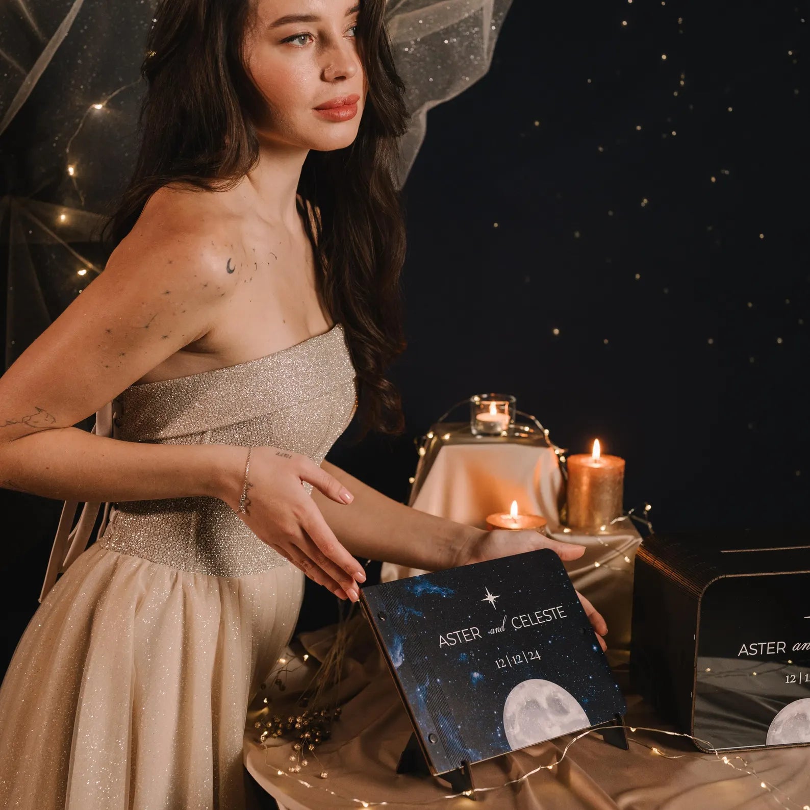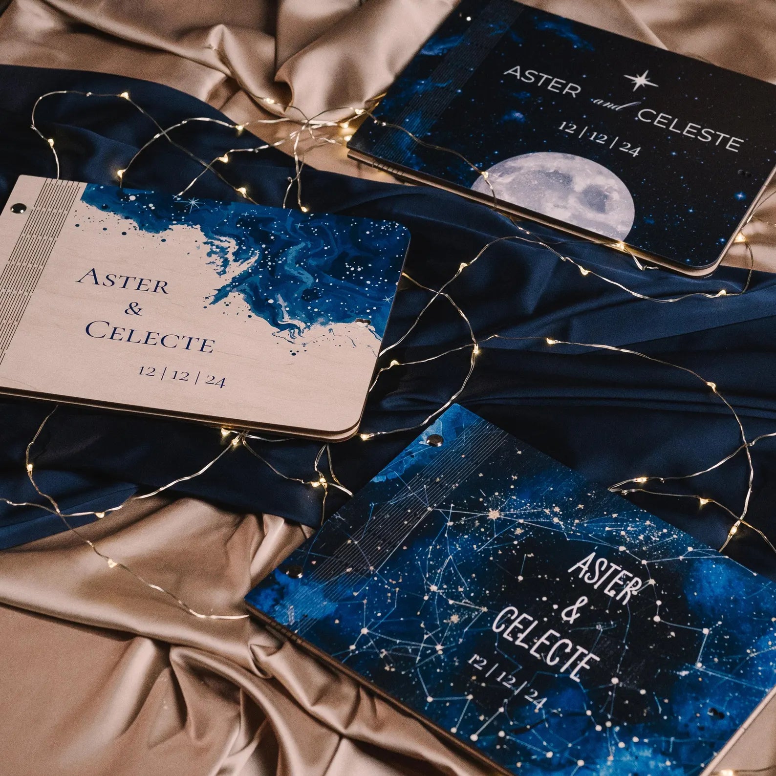 🌙 Six modèles uniques pour que chaque couple trouve le style idéal, inspiré des étoiles. Avec une variété de motifs célestes, chaque modèle rayonne de charme, vous permettant de choisir celui qui reflète le mieux votre histoire d'amour. Que vous préfériez un design délicat et minimaliste ou un design audacieux et radieux, notre sélection offre une coupe « étoile » pour tous les goûts.