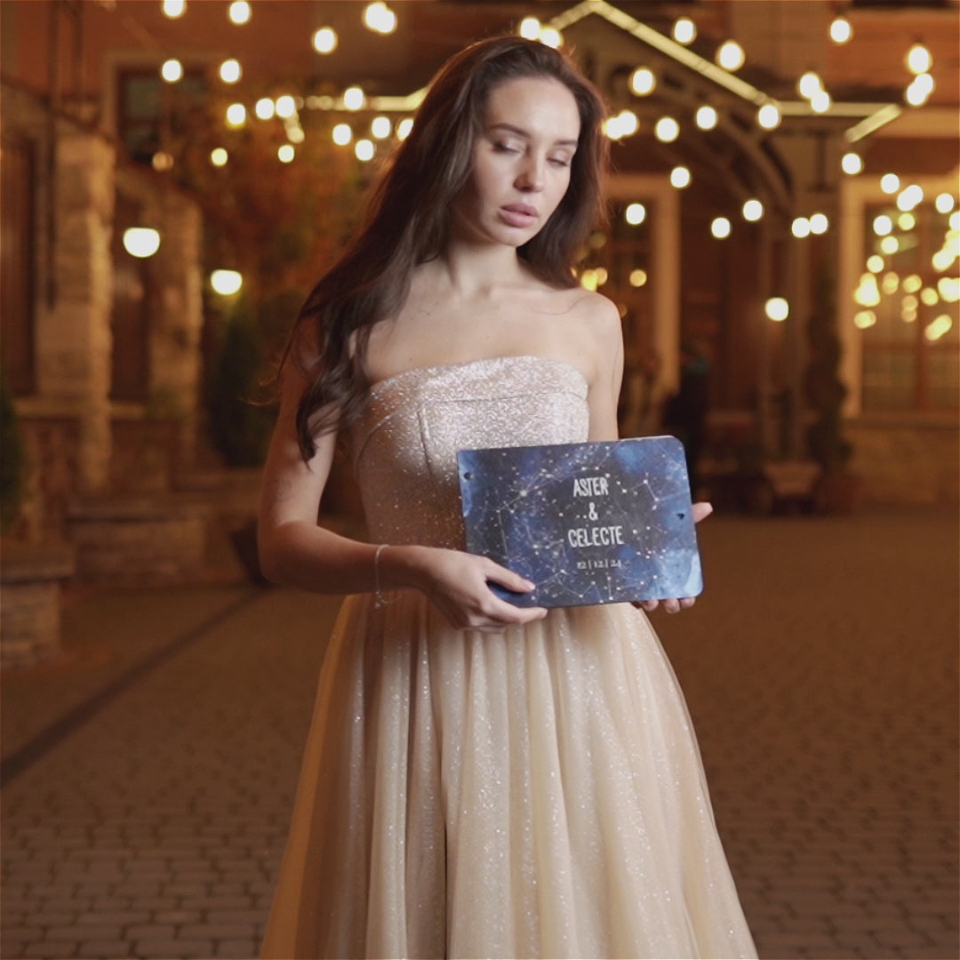 🌙 Notre album de mariage est un magnifique souvenir conçu pour capturer les messages et les souvenirs les plus sincères de votre mariage. Inspiré par la beauté du ciel nocturne, ce livre d'or présente des détails célestes délicats et des matériaux luxueux, ce qui en fait un ajout élégant à votre décoration de mariage. Chaque page invite vos invités à laisser leurs vœux les plus chaleureux, créant ainsi un trésor intemporel que vous pourrez revisiter pendant des années.