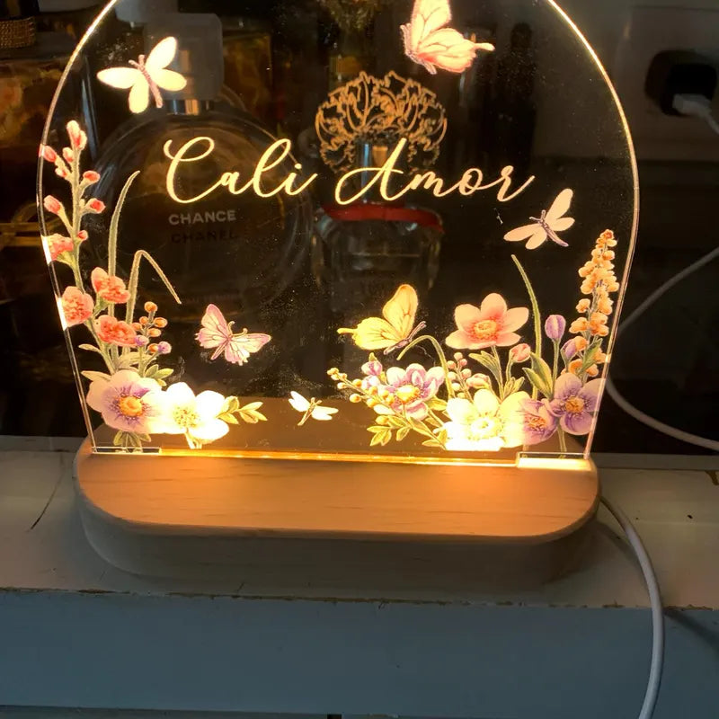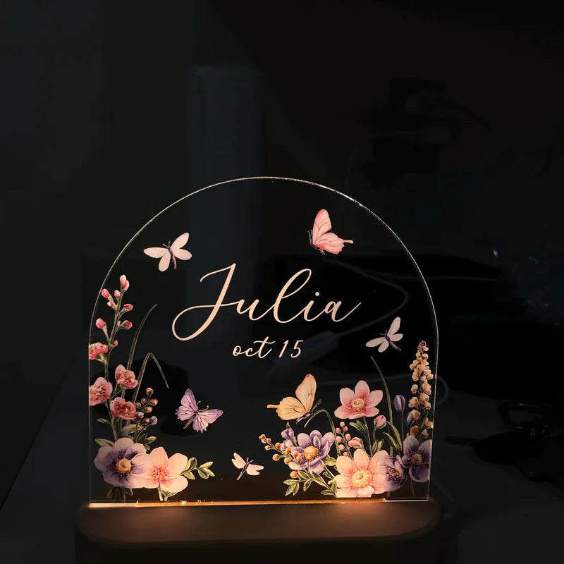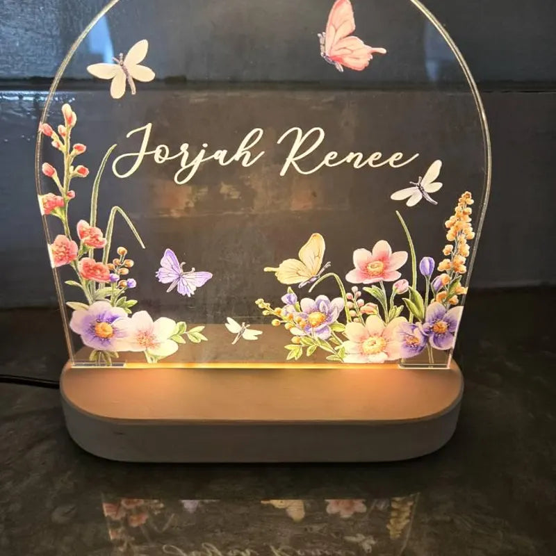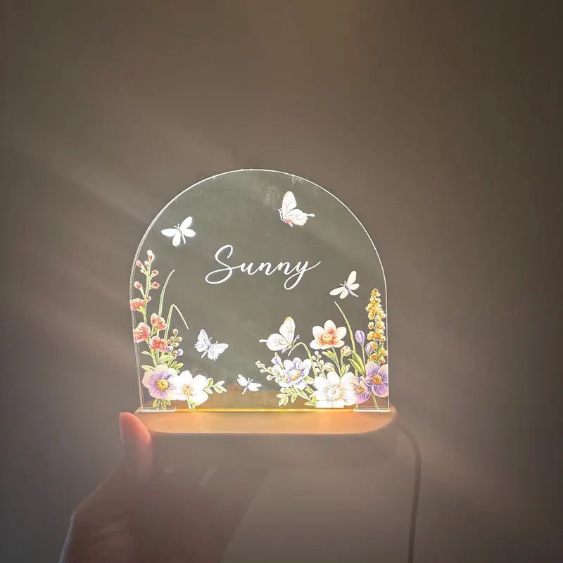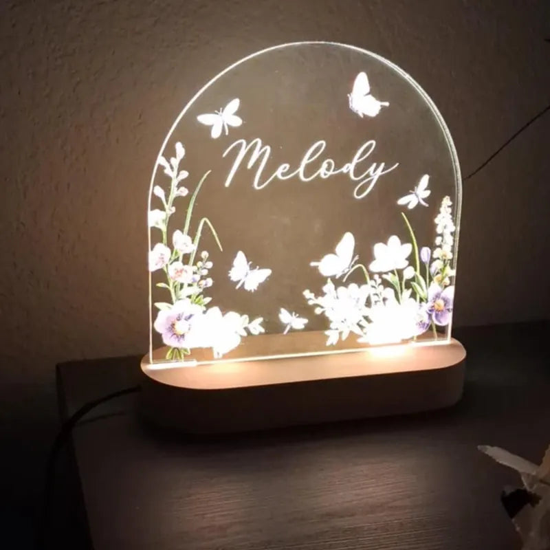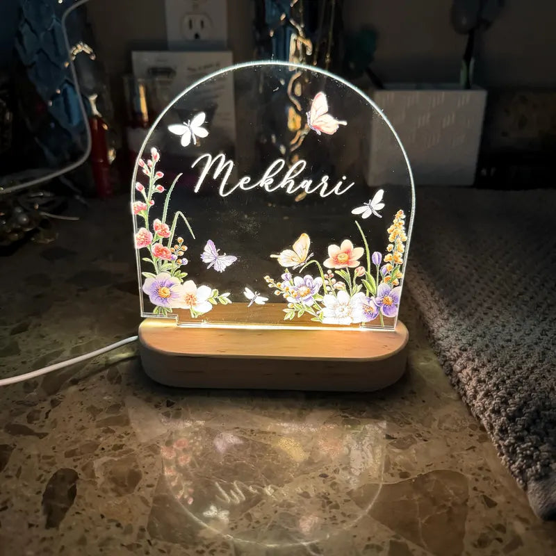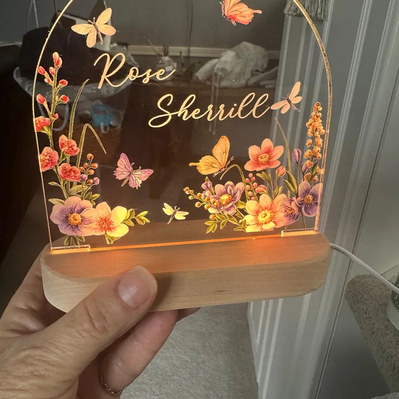 Custom Floral Night Light for Baby Girl Nursery Decor - Personalized Name Lamp