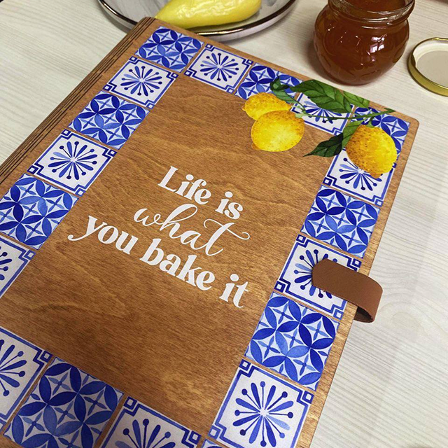 Personalized Recipe Book with Wooden Cover, Mediterranean Style Kitchen Decor
