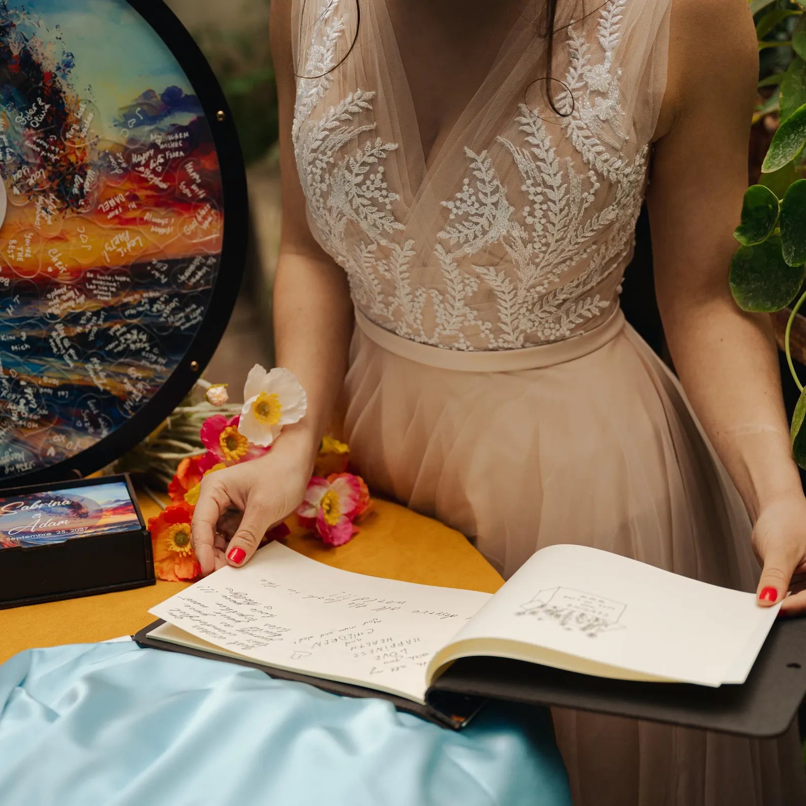 Guest Book Album. Inside, your guests can share warm wishes, messages, and memories — creating a meaningful keepsake that tells the story of your special day, page by page.