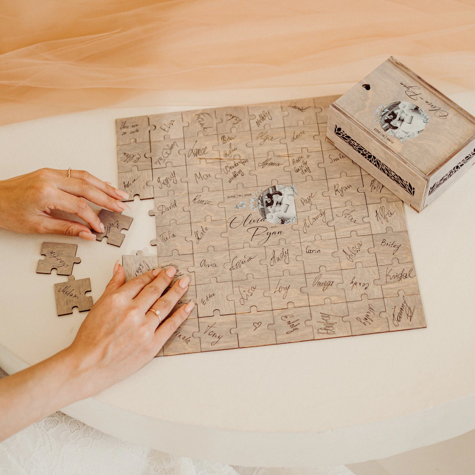 🧩 We know that your wedding day is extremely important, every detail matters... We know that these memories will be priceless and we know how to keep them. Our guest book alternatives are made just for that. Every item is carefully handcrafted from premium quality Baltic birch. We use laser cutting and printing to make and personalize it.
