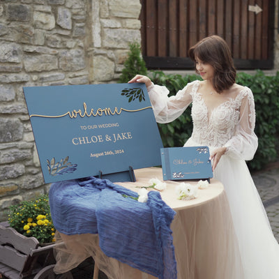 Personalized Wooden Welcome Wedding Sign with (Optional) Guest Book *