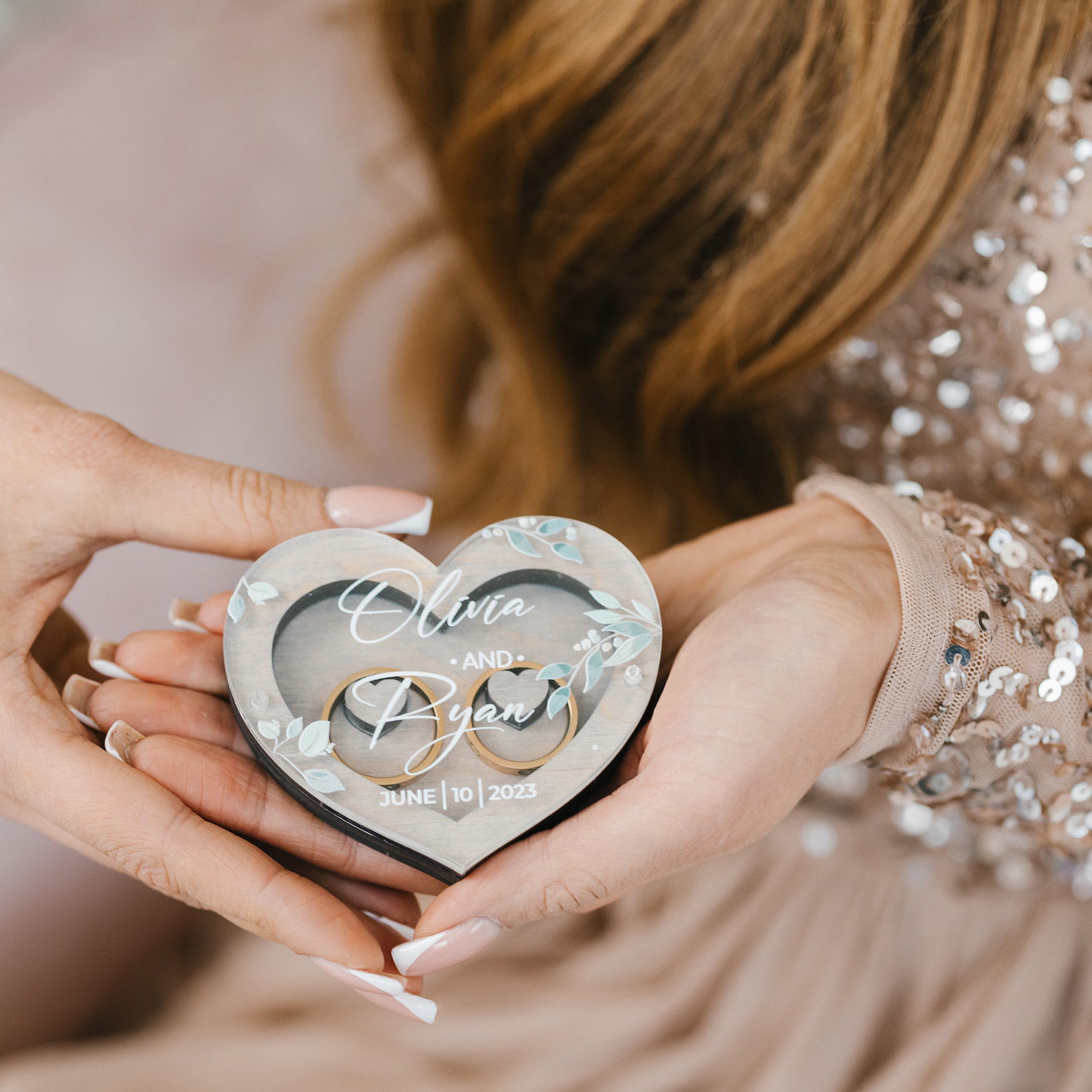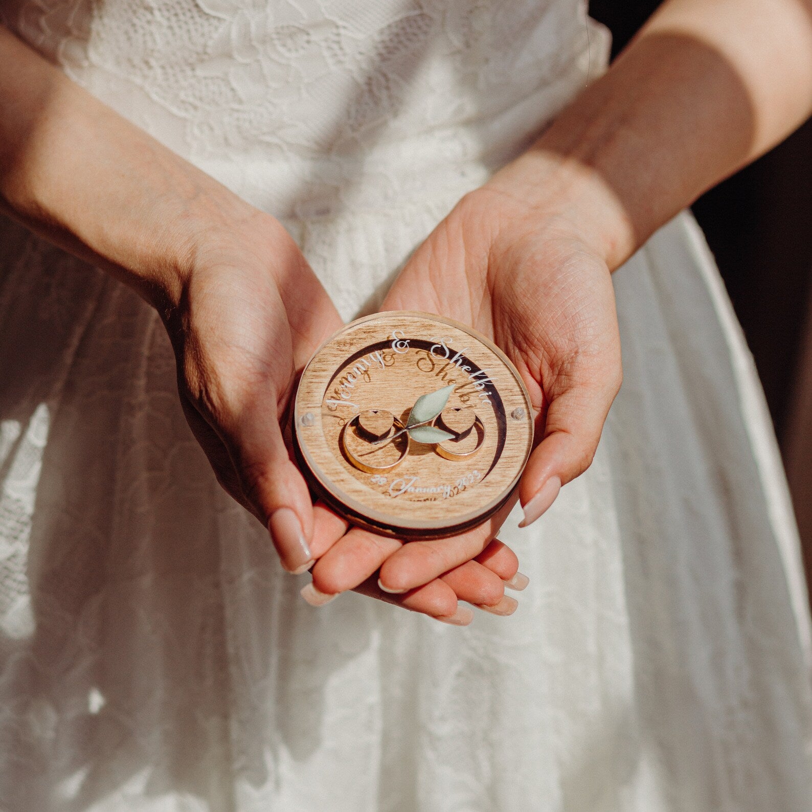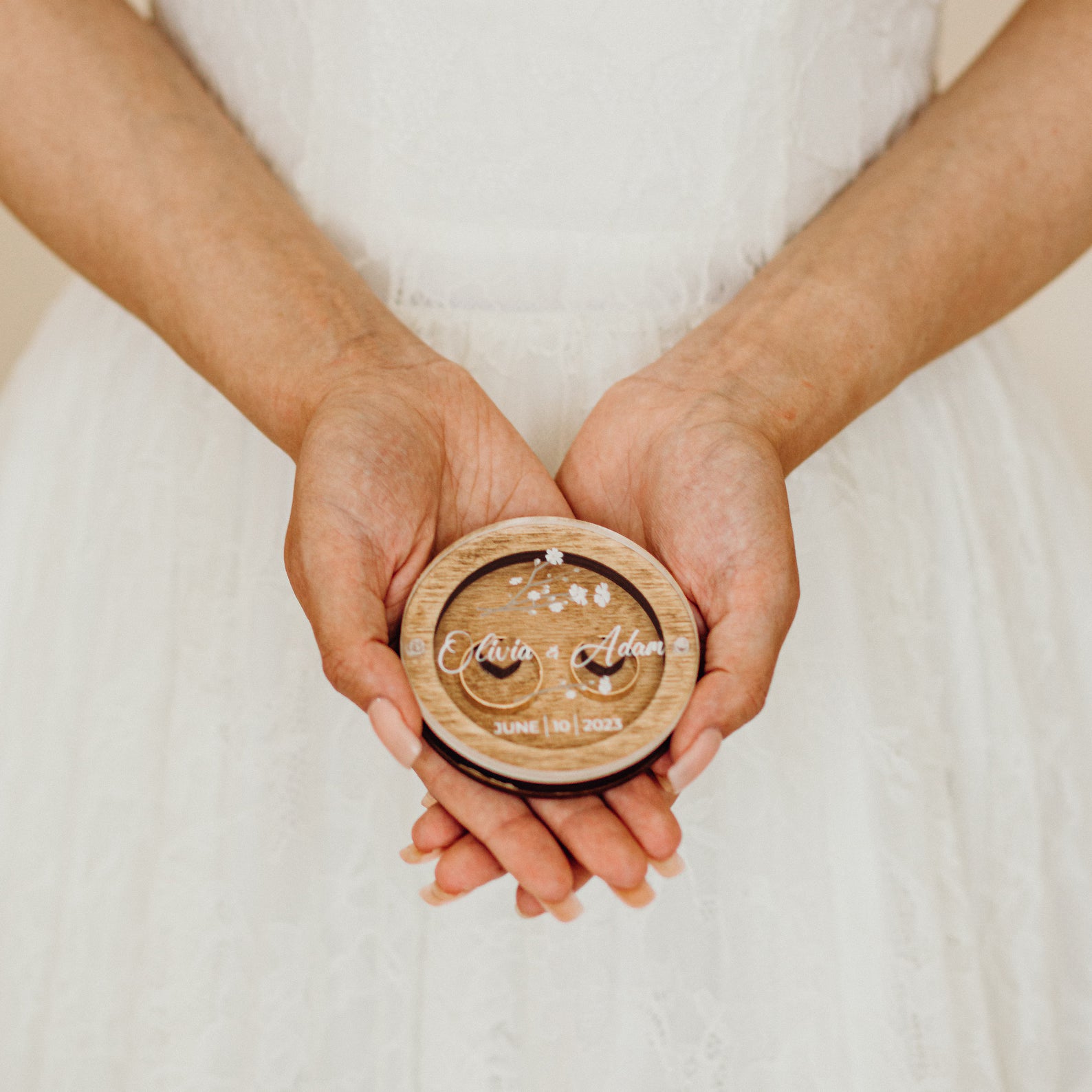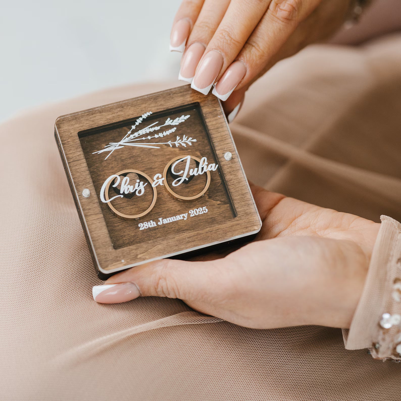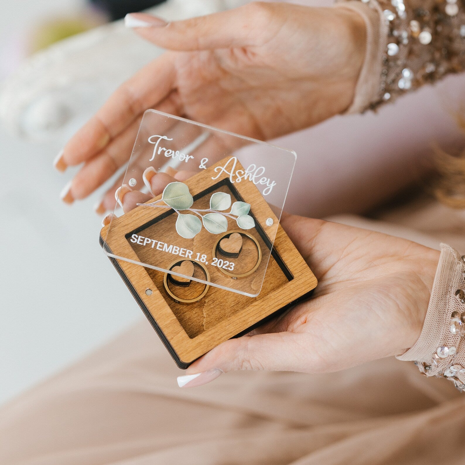❤ Wedding ring box is a unique memory about your Big Day. We will send you a digital preview within 24 hours after you place an order. The monogram is printed on acrylic glass. Custom design is possible.