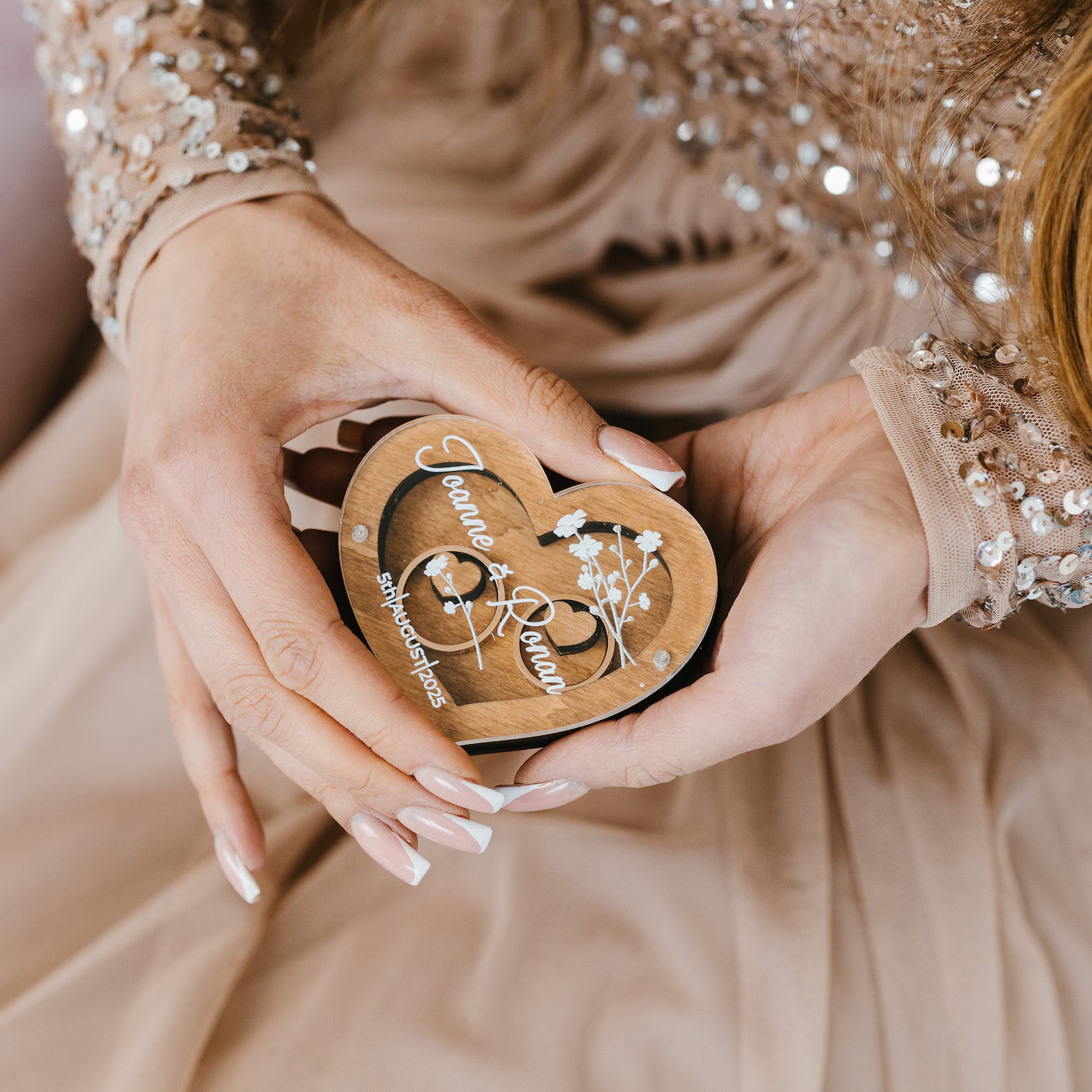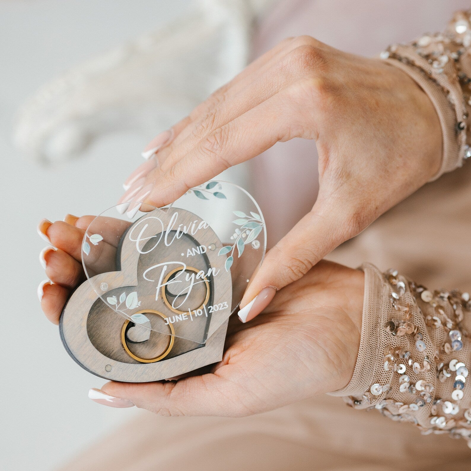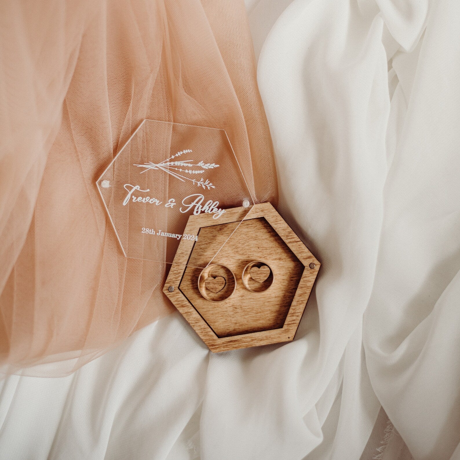 Personalized Wooden Ring Box with Acrylic Lid, Heart Shaped / Square / Circle Engagement Ring Box